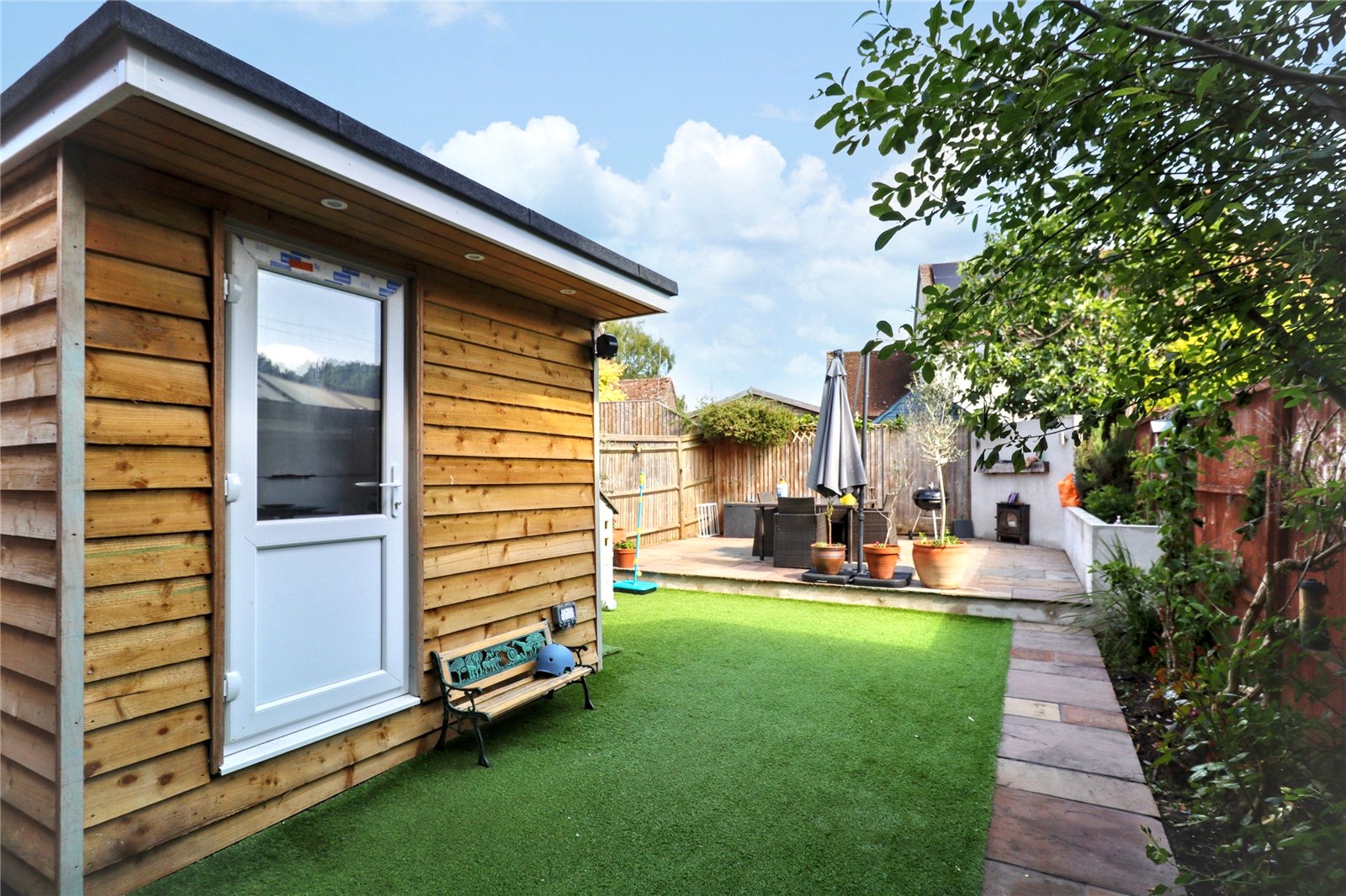 The generous rear garden is perfect for outdoor living, with a recently added larch-clad home office/snug, fully powered and ideal for working from home or relaxing. A smart patio area sits at the end of the garden, where the owners have creatively repurposed a former indoor log burner into a patio heater, allowing you to make the most of your outdoor space even as the evenings cool. There is a garage and parking too.