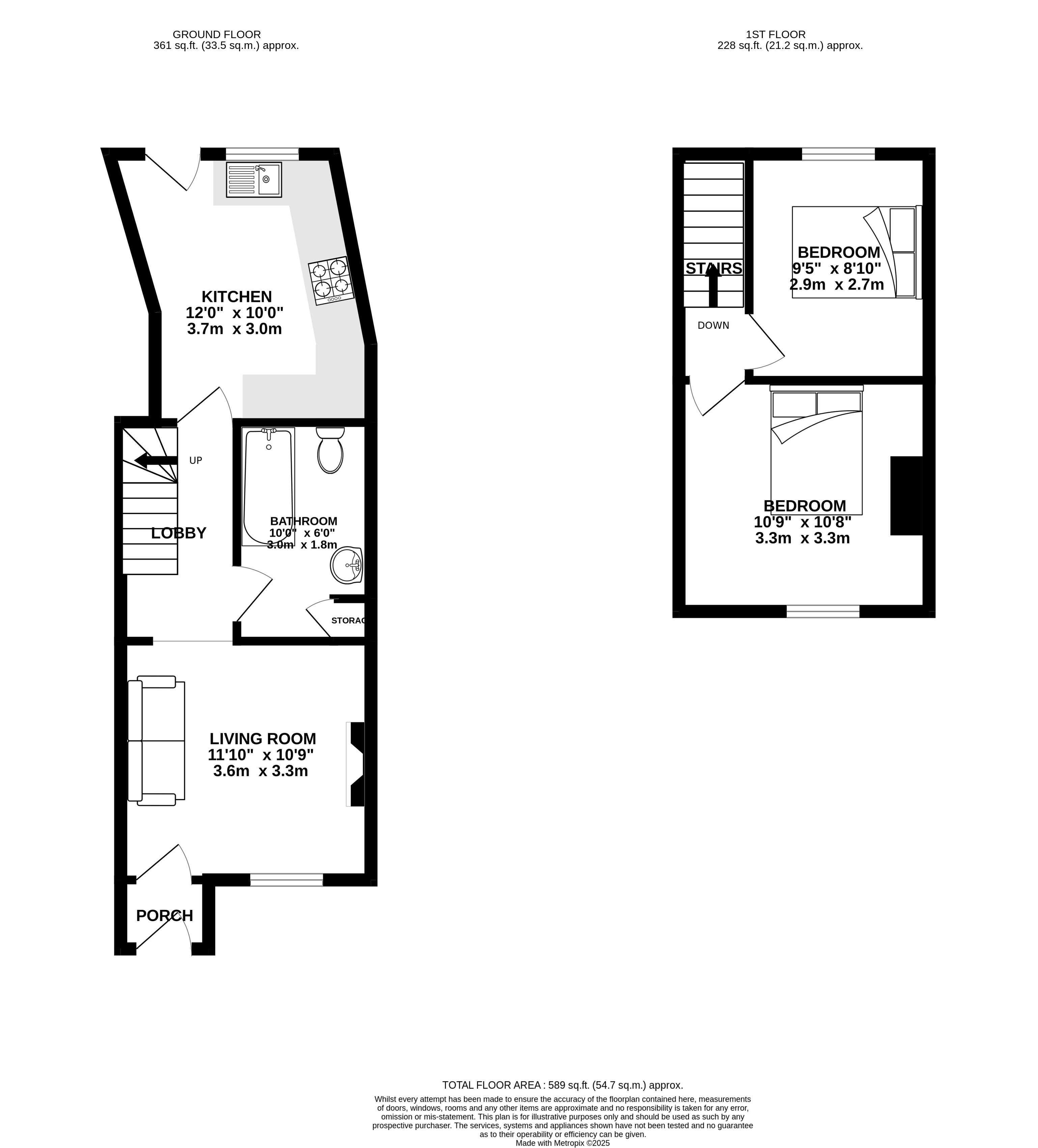 Inside, the home offers a living/dining room with a feature fireplace, a separate kitchen with garden access, and a ground floor bathroom. Upstairs are two good-sized double bedrooms. The property would benefit from cosmetic updating, but already has a solid footprint and plenty of charm to work with.
